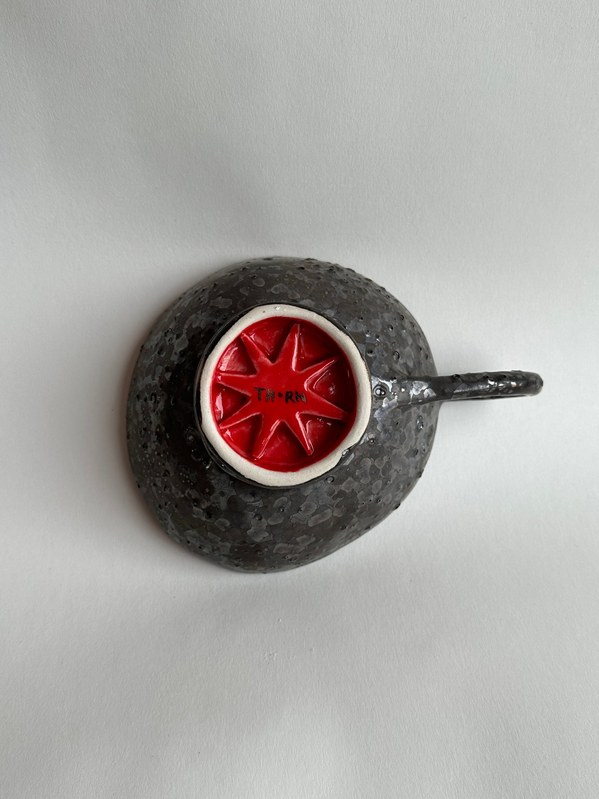 Thoughtfully painted in a metallic toad like outer glaze with 24krt white gold lustre illustrations.