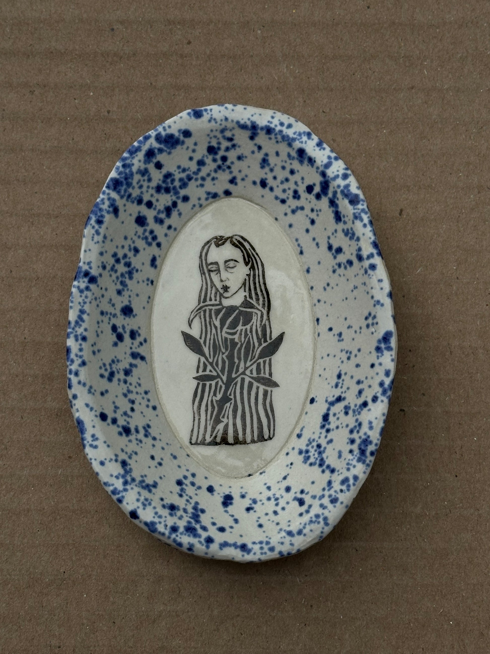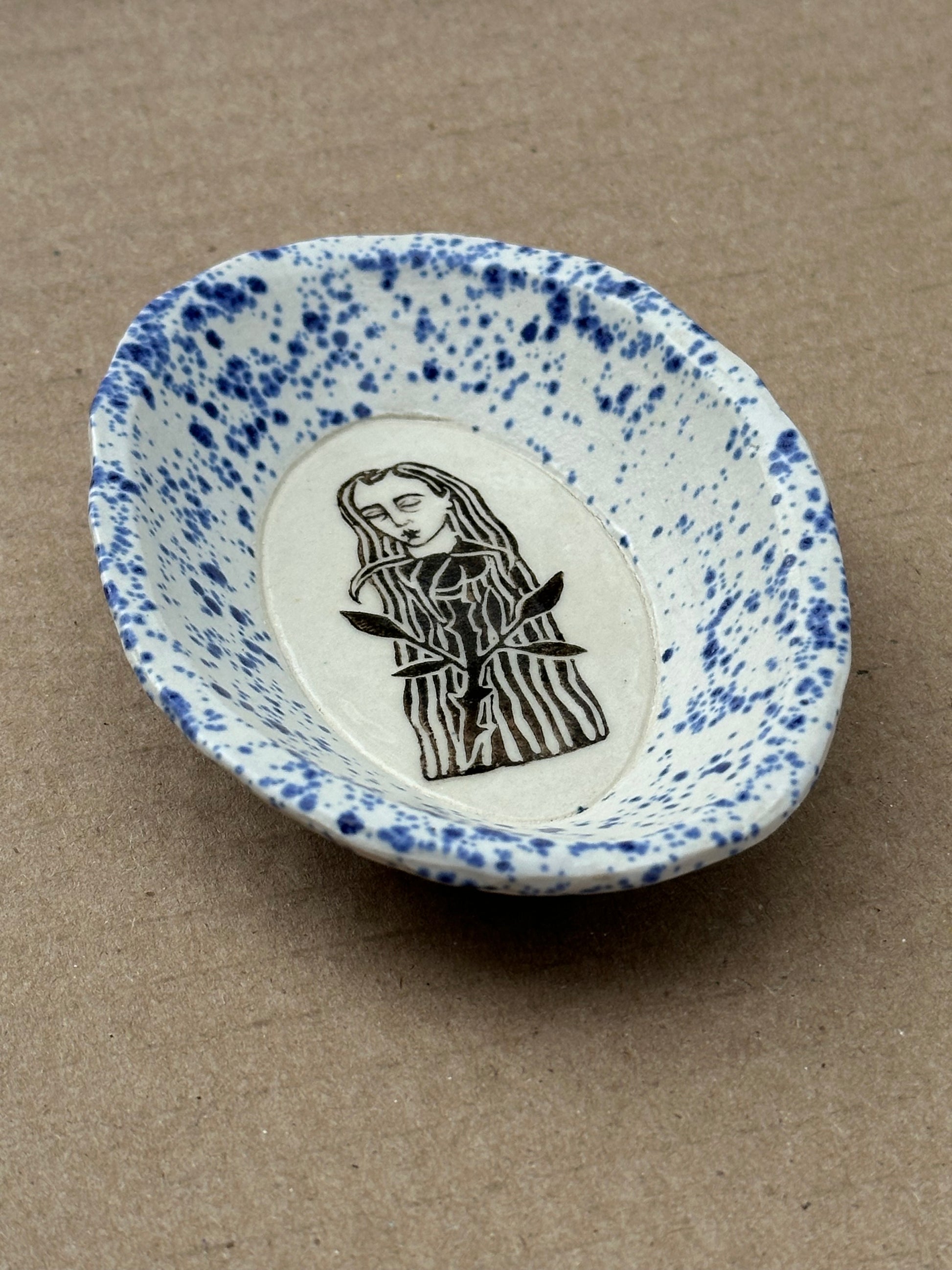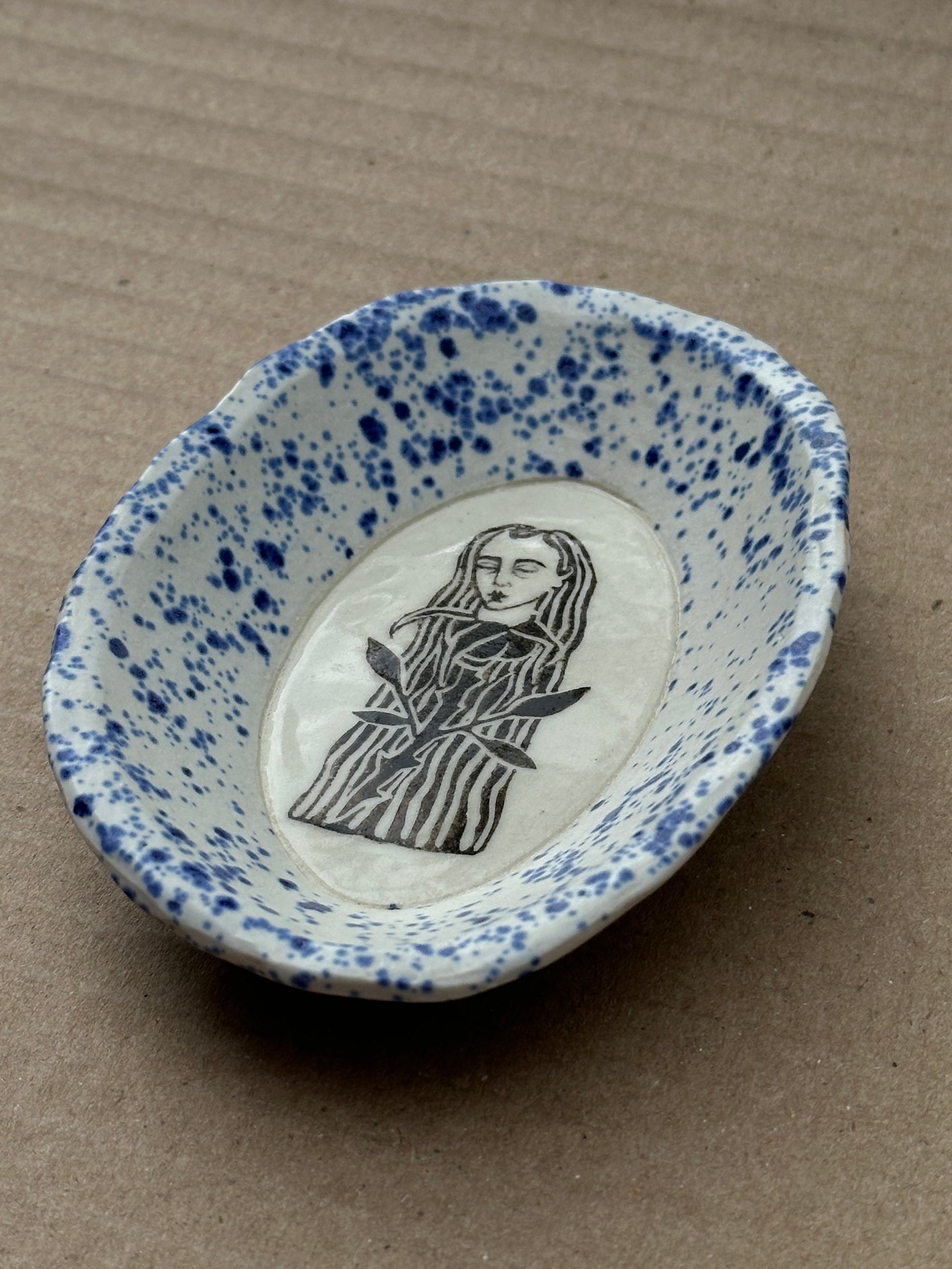 Hand sculpted and painted porcelain dish