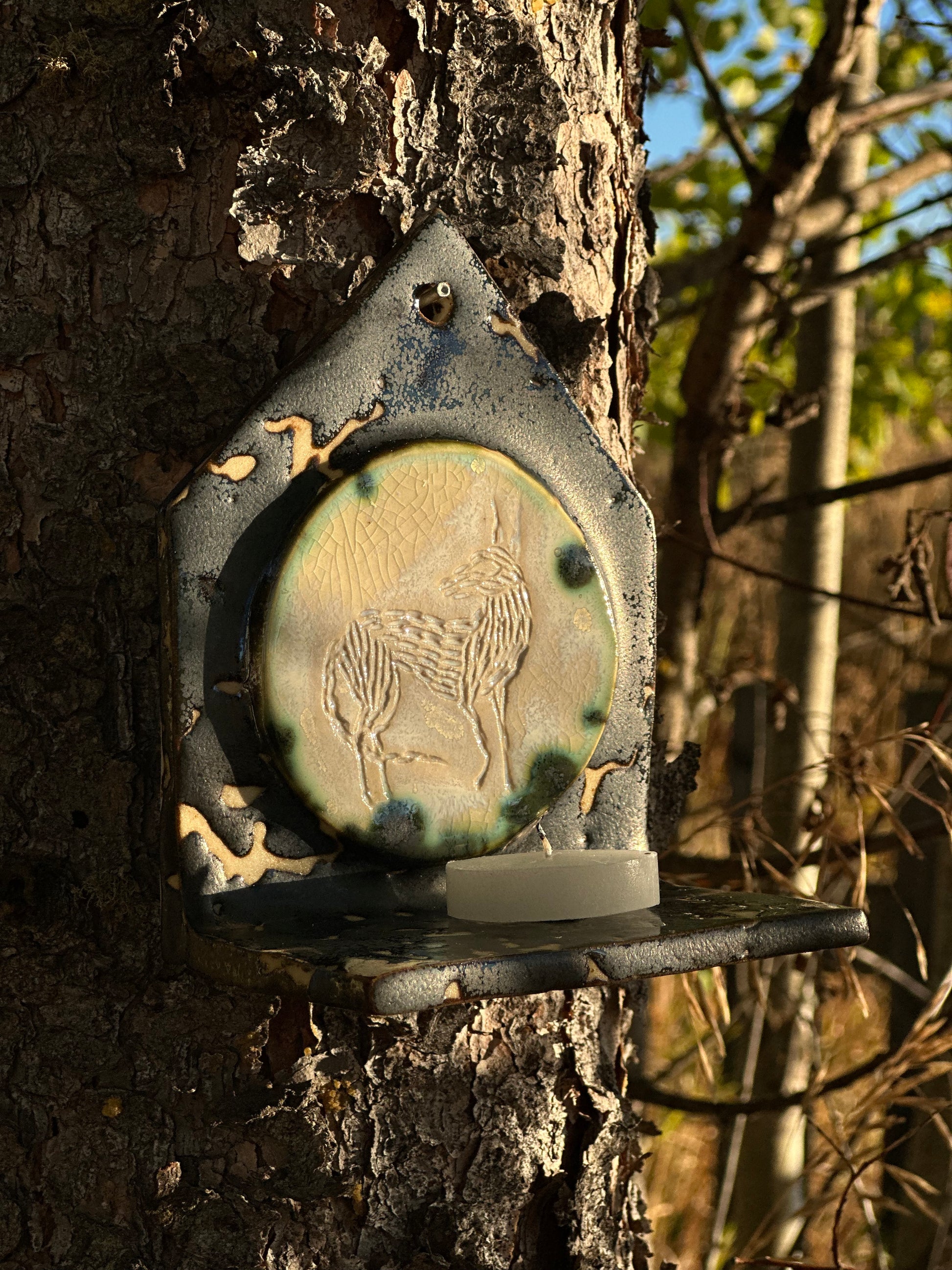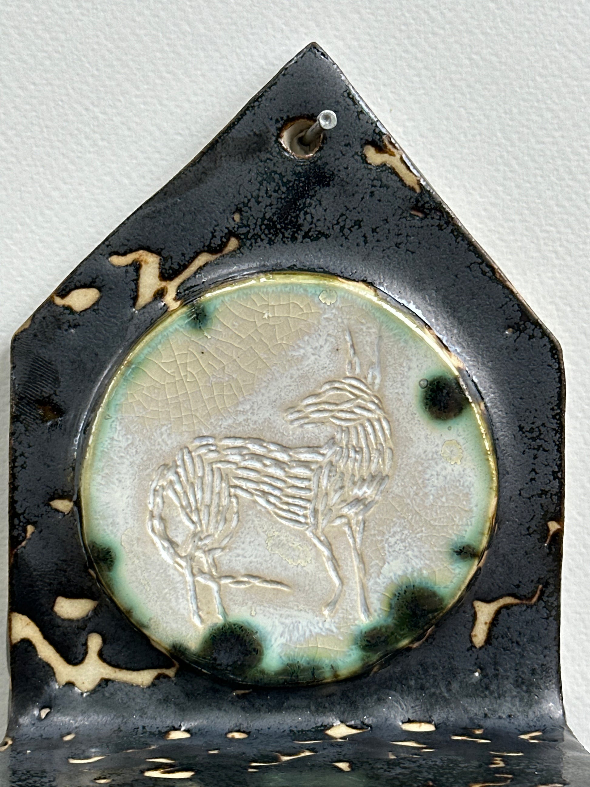 Rich illustration created with a carved relief technique. Painted with various earthy glazes, set to honour autumnal shades and textures. Made to last for centuries to come.