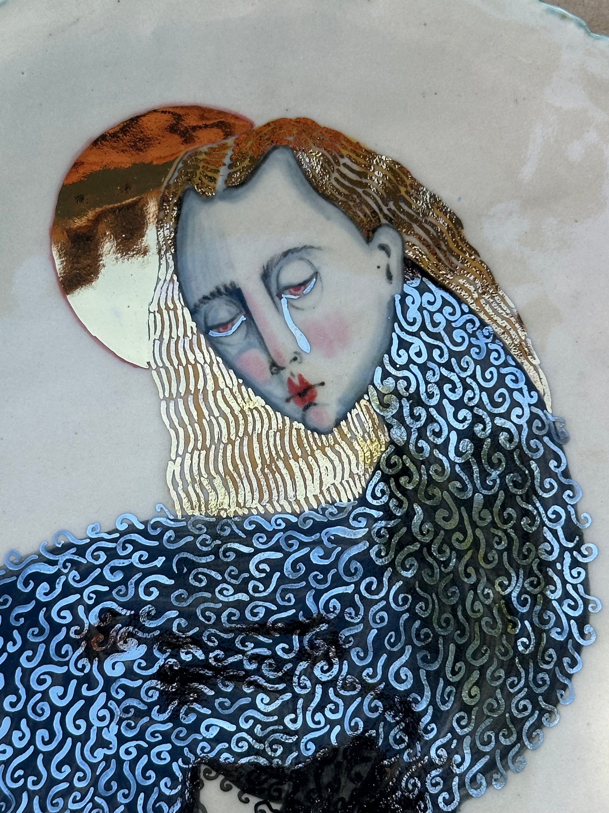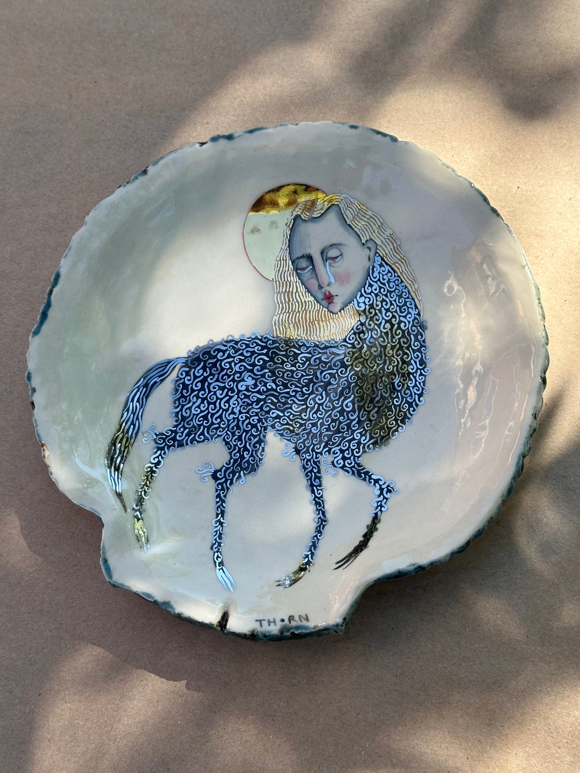 An ethereal porcelain shell, exquisitely crafted and adorned with delicate hand-painted imagery at its heart.
